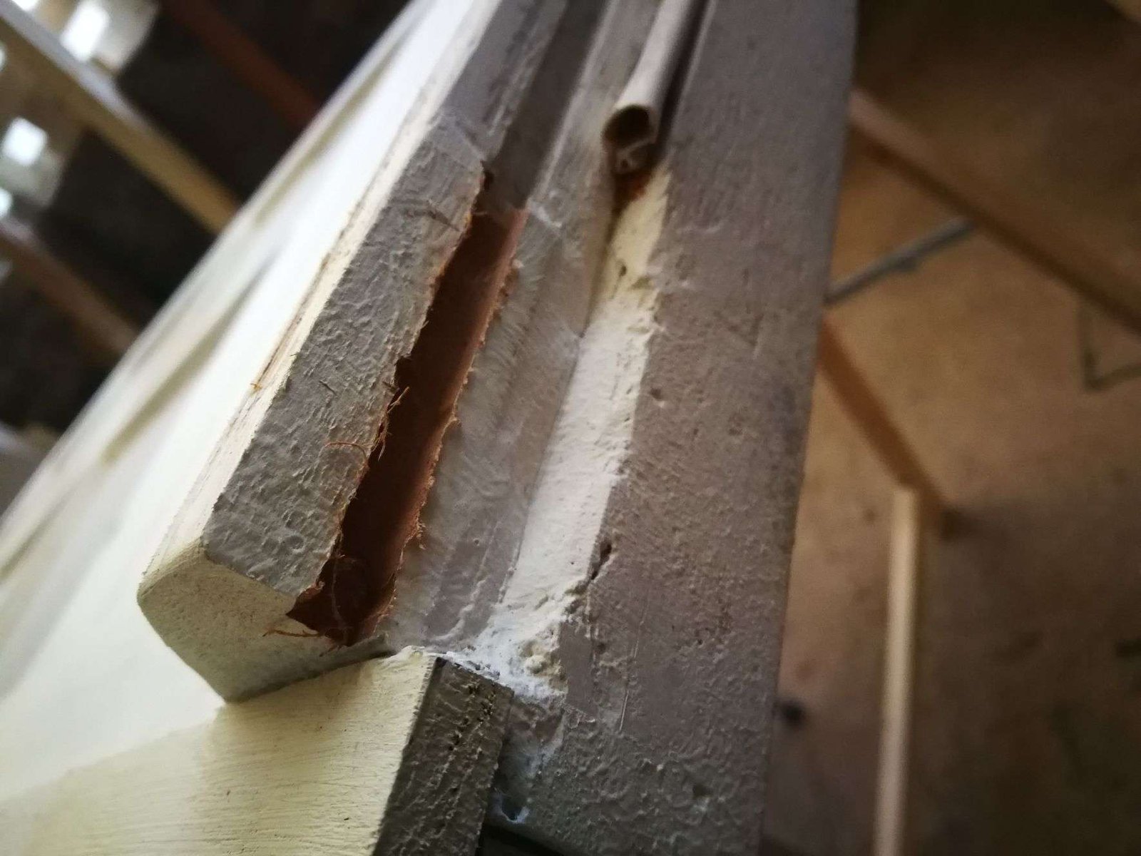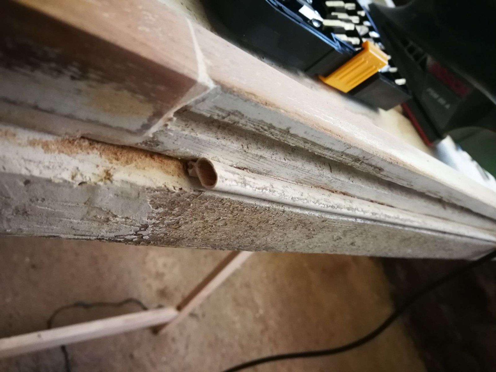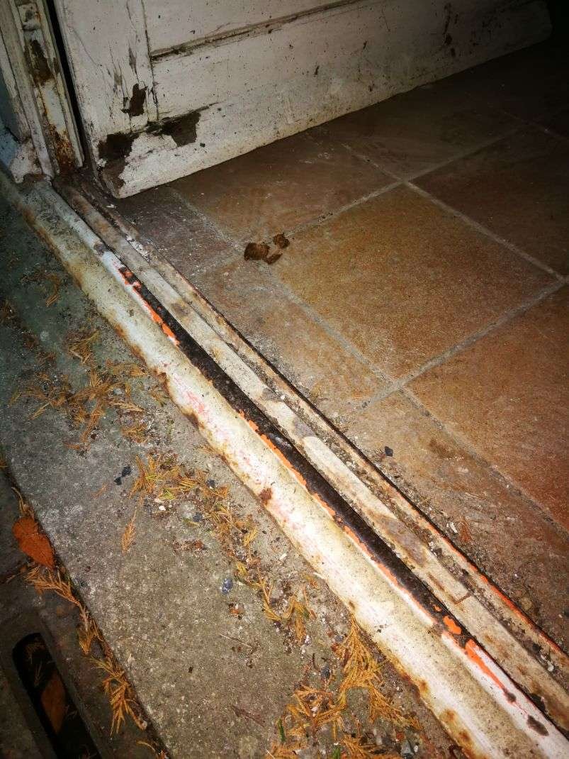 Les portes ont vécu, souffert de coups de griffe des chiens et chats, de montée des eaux du caniveau jusqu’à plus récemment en inonder la cuisine. Les bois de bas de porte sont devenus spongieux et les mécaniques grippées à ne plus pouvoir ouvrir les battants autrement qu’au marteau et burin.